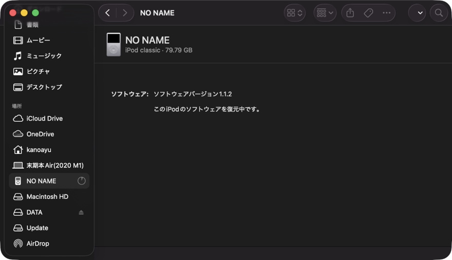 だいぶ前に購入したものの、結局あまり使わないまましまい込んでいたアイポヨくらしっく(iPod Classic 2017年12月発売5.5世代モデル)を某所に売却したため、久々に電源に入れてデータを初期化するためにmacOS26 たほ!にアップグレードしたM1まくぶくえあえあで初期化することにしました。