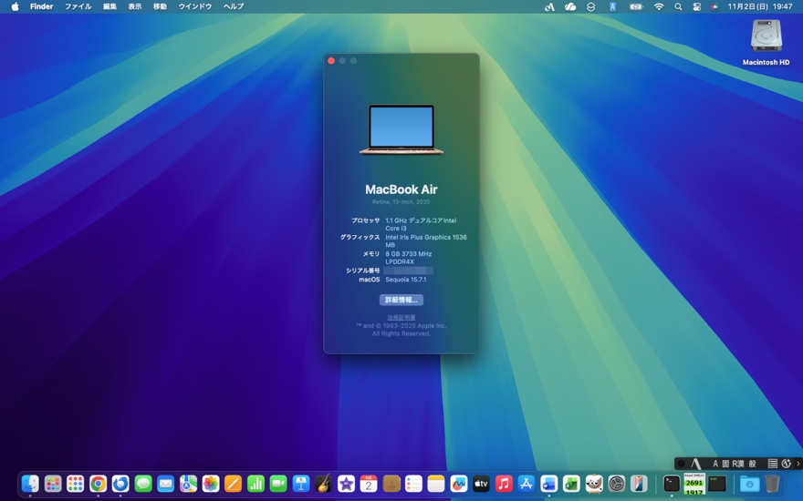 正直えあえあに限らず、「3年でMacとしては死ぬ」ことが確定してしまっていますし、同じ筐体のM1えあえあも中古相場が5万(ジャンクで良ければ3万台で買えちまうんだ!購入出来るようになってきました)に落ち着いてきていますし、林檎インテリジェンスも利用できるのでそちらをお勧めしますが、サブ機としてであれば「2020年型えあえあ」であることには変わりないので最高の相棒になってくれると思います。やっぱりかっこいいしね・・・