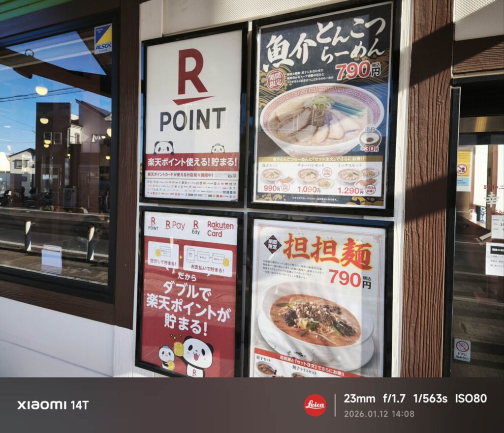 以前はキャッシュレス決済がクレジットカードとPaypayにしか対応していなかったのですが、2025年5月以降郊外店のみ「d払い」「au Pay」などのキャリア決済も利用できるようになりました(ポイントの取り扱いは引き続き楽天ポイントのみ)。