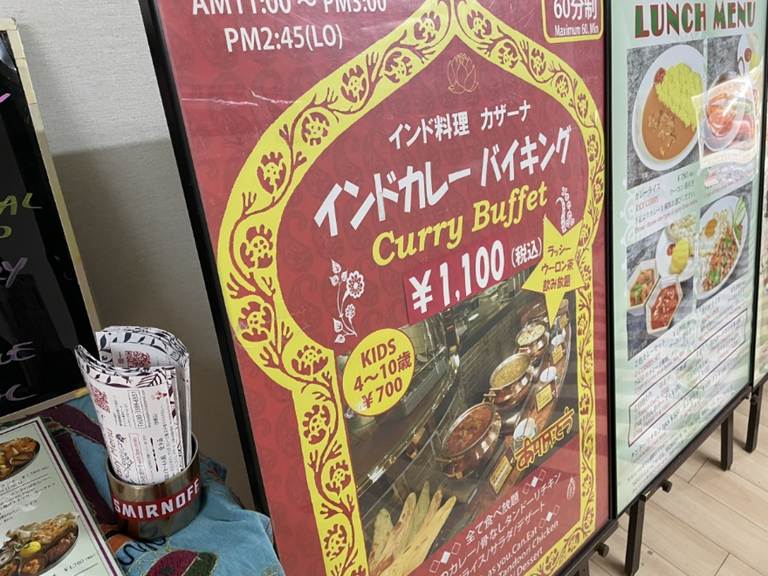 デックス東京ビーチのレストランフロアには他にもランチタイムであれば安価でおなか一杯食事を楽しむことができるビュッフェを提供している店はいくつか入っているのですが、「カザーナ」では土・日も含めわずか1,100円で本格的なカレーやナン、ラッシー(ヨーグルトドリンク)・ウーロン茶が60分食べ・飲み放題という、ここ数年物価高が進んできている中マジで「神」のようなカレービュッフェを提供しています。