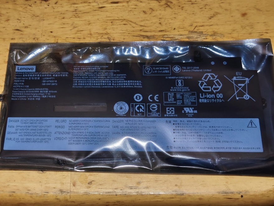 Amazonが倉庫を委託で貸しているプライム発送商品なら中華業者でも安心だろうと思っていたのですが、そもそもすでにAliExpressやTEMU等で販売されているぁやしい製品が多数紛れているなかこんな物を最も信頼しているシンクパヨウX1c Gen 9ちゃんのために購入したかのあゆは本当に大馬鹿だと思います。一応これでも使えはするのですが、これならもともと装着していたLenovo純正バッテリーの方がマシなので本日急遽新品バッテリーを購入しました。