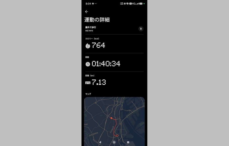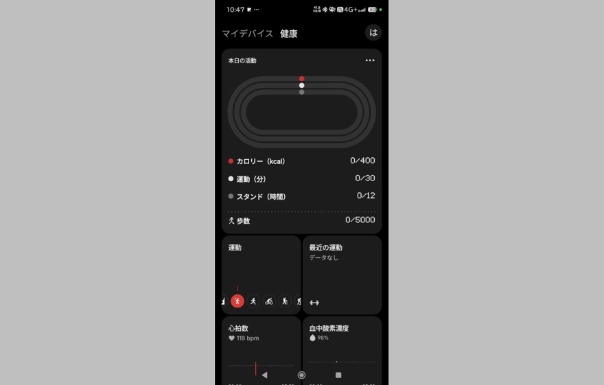 一応IPX5/8準拠の防水・防塵に対応していますし、ぶっちゃけお風呂に入る際につけたまま湯船につかっても(今のところ)無問題…なのですが、5ATM防水ではないので水泳などのウォータースポーツのトラッキングは非対応となりますが、ウォーキングやランニング、サイクリングと言った代表的な運動については一通り対応しています。発売当初はサポートしていなかったようですが、Androidの場合Fit Connect経由でGoogle Fitと運動データや後述する健康データを相互同期することも可能です(iPhoneの場合はヘルスアプリとの相互同期に対応)。