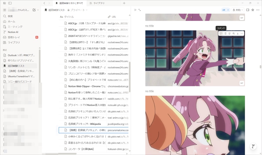 WEBクリップの仕様上、Notion上で確認できる情報は「キャプチャした時点の」ものになってしまいますが、ソース元のリンクも一緒に記録されているのでそちらから最新情報を確認することも可能ですし、何らかの事情でページが削除・サイトが閉鎖されてしまった場合もNotionのWEBクリップから読むことが出来るので使ってみると本当にこれがかなり重宝します。