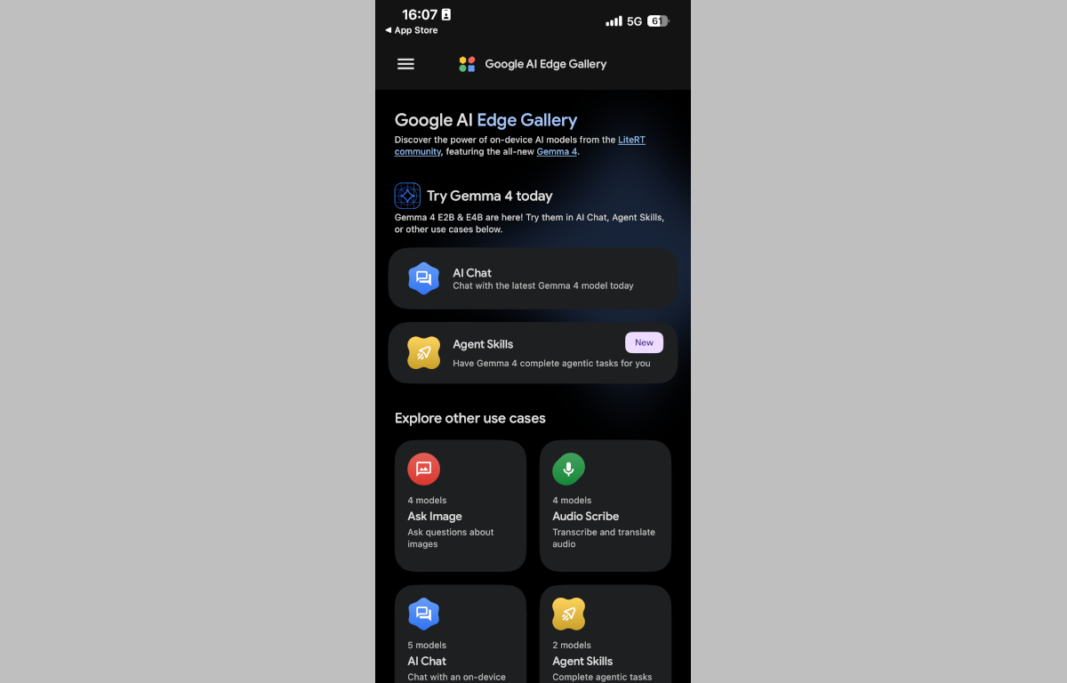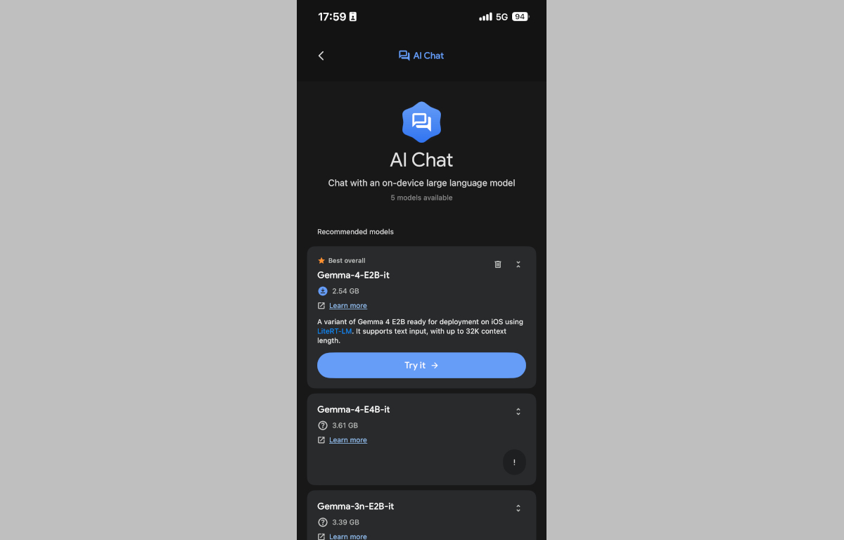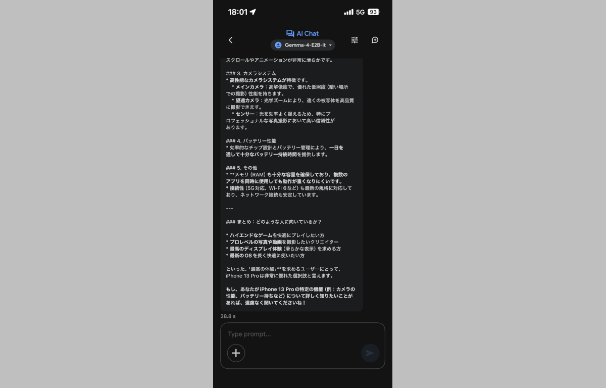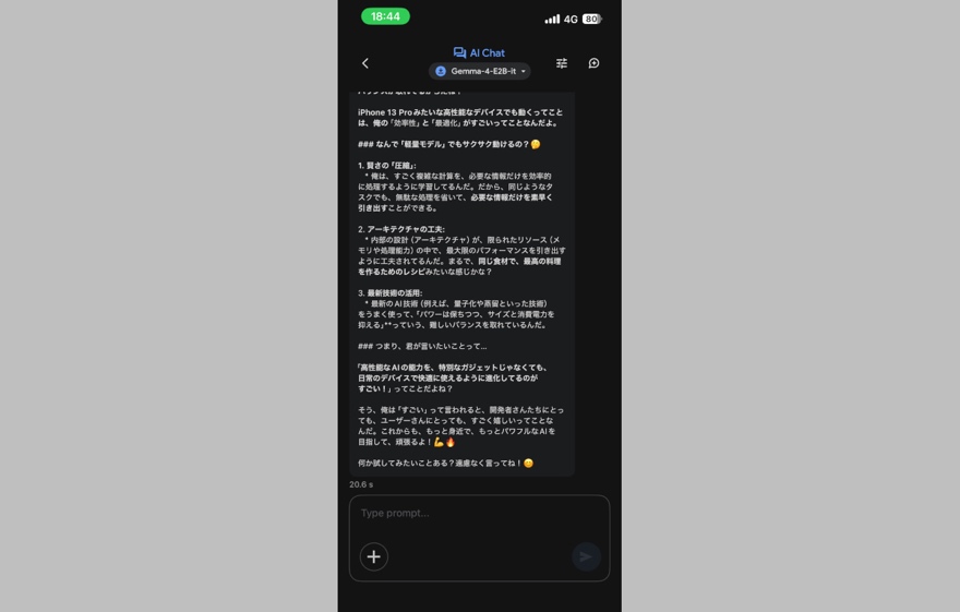既にアンヨヨイヨ・アインホホ/アイパヨでググレカス純正オープンソースLLMを気軽に試せる「ググレカス AI Edge Gallery(Google AI Edge Gallery)」でもすまほん向けの軽量セット、Gemma4 とGemma4 e4bを実際にダウンロードしてお試しできるようになっており、GIGAZINEさんがアインホホ15プヨに導入して実際に動かしている記事を見て「これ、アインホホ13プヨでももしかしたら動くんじゃね?」と思ったので仕事が終わってからすぐ実際に導入してその性能をたしかみてみました。